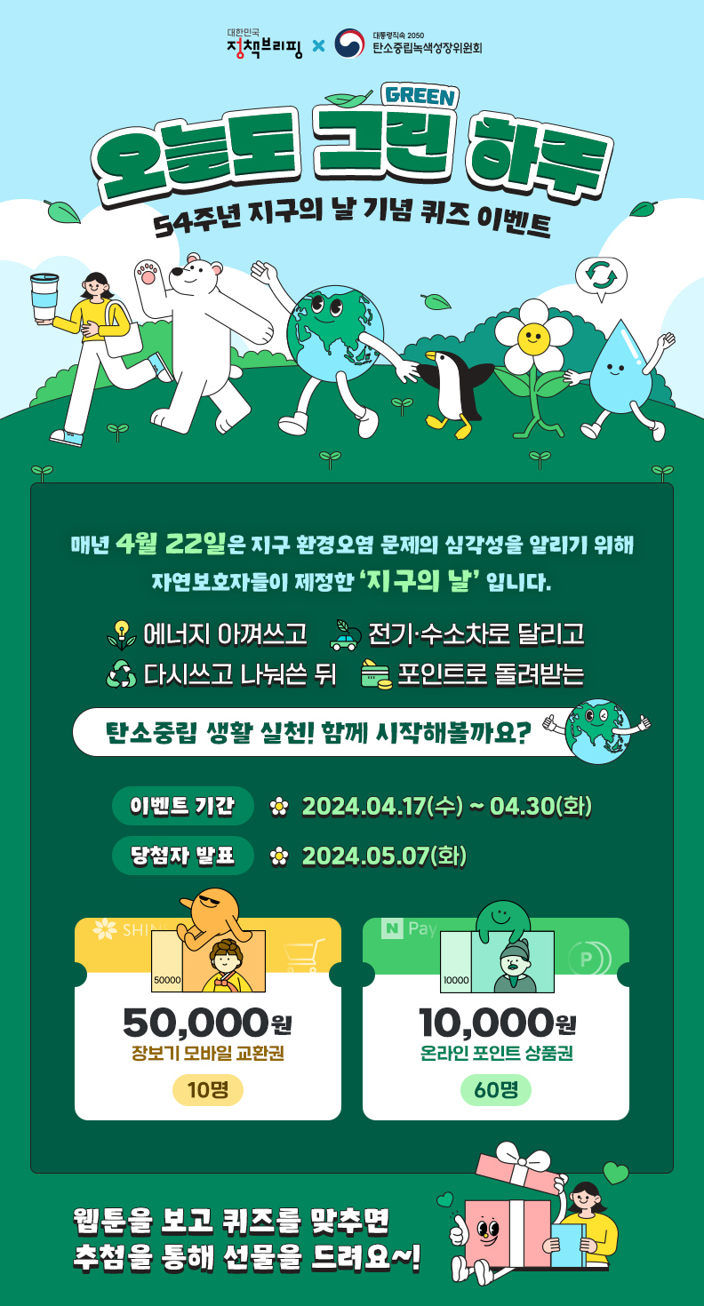 [지구의날 기념 퀴즈 이벤트] 오늘도 그린(GREEN) 하루