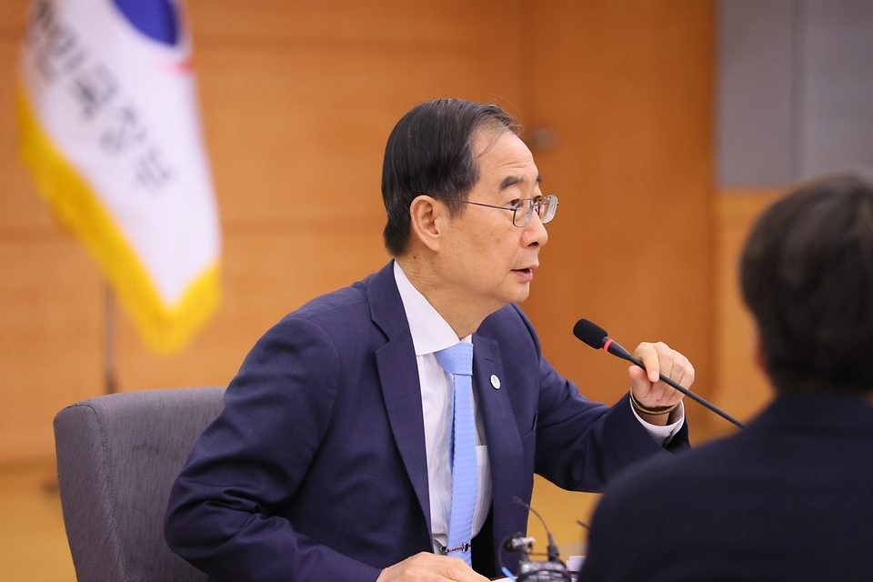 한덕수 국무총리가 10일 서울 종로구 정부서울청사에서 열린 ‘2050탄소중립녹색성장위원회 전체회의’에서 발언하고 있다.