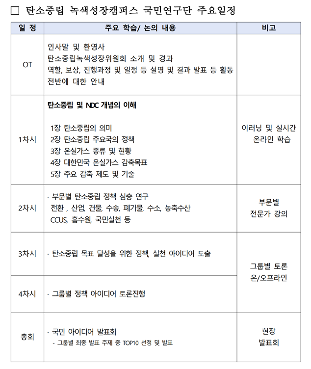 [탄소중립녹색성장캠퍼스] 국민연구단 일정안내