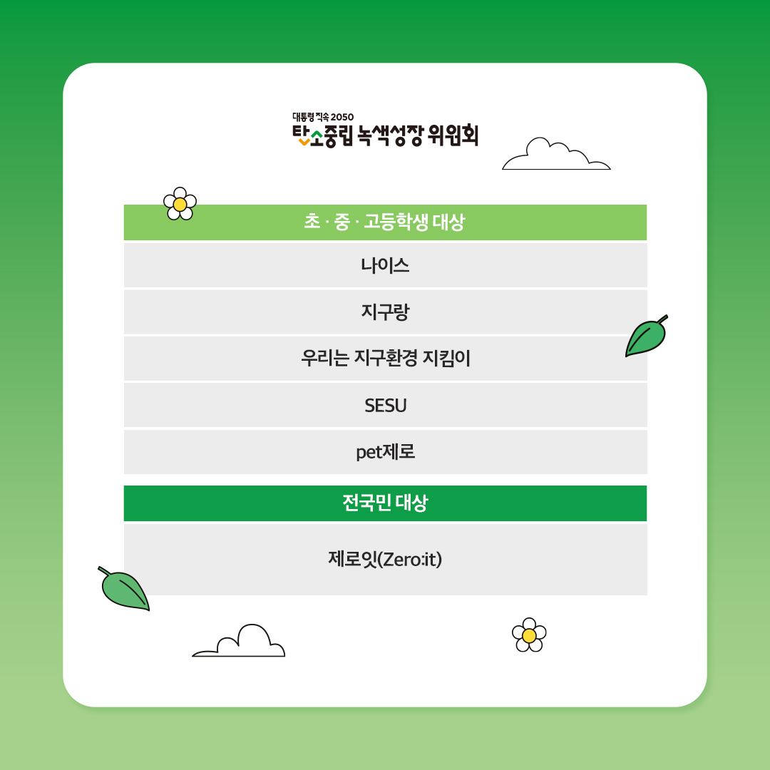 2025년 대통령직속 2050 탄소중립녹색성장위원회 넷제로프렌즈 제 3기 추가 모집 부문 선정 발표