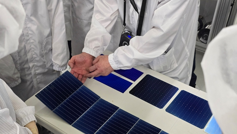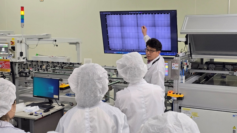 [모든 공정을 거쳐 제작된 태양광 모듈를 직접 확인해 보는 시간도 가졌습니다]
