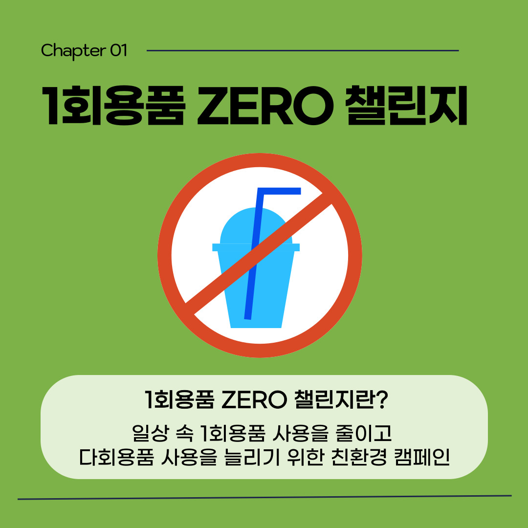 다양한 챌린지가 등장하는 요즘, ‘1회용품 ZERO 챌린지’도 유행하고 있습니다. 1회용품 ZERO 챌린지는 2023년 2월 환경부 장관으로부터 시작해 현재까지 릴레이 방식으로 진행되고 있으며, 일상 속 1회용품 사용을 줄이고 다회용품 사용을 늘리기 위한 친환경 캠페인입니다. 기업, 시장, 구청장 등 여러 유명 기업과 인사들이 해당 챌린지에 참여함으로써 환경보호를 위해 앞장서고 있습니다.