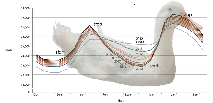 캘리포니아 지역의 덕 커브(Duck curve) 그래프 (사진 자료=California ISO)