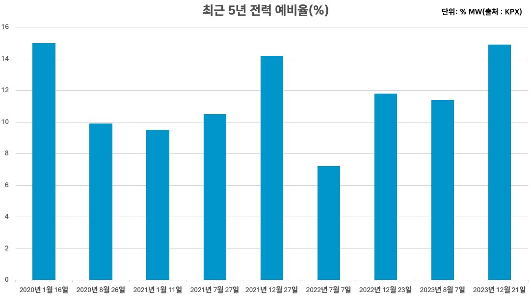 최근 5년 최대전력 실적 및 예비율 (사진 자료=한국전력거래소(KPX)숫자 재가공)
