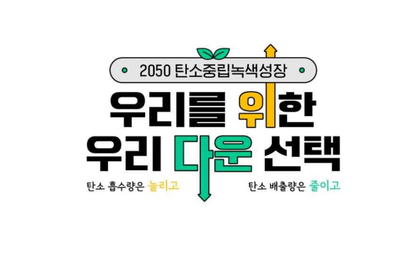2022년 10월에 시행된 2050 탄소중립·녹색성장 대국민 캠페인은 “우리를 위한 우리 다운 선택”을 메인 슬로건으로 내세웠습니다. 이 슬로건은 탄소 흡수량은 늘리고 배출량은 줄여 순 배출량을 ’0‘이 되도록 만든다는 탄소중립의 정의도 함께 담아냈습니다. 생활 속 탄소중립 실천이 우리에게 불편함이 아닌 혜택으로 돌아올 수 있다는 메시지를 국민께 널리 알리고자 하는 취지로 진행되었습니다.