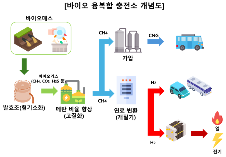 이에 따라 정부는 기존에 액비 퇴비화나 동물 사료화에 사용되던 유기성 폐기물을 고부가가치로 전환하고, 미연소 가스를 활용할 수 있는 방안을 모색하고 있다. 가장 대표적인 방법으로는 바이오가스에서 분리된 바이오메탄을 바이오수소로 전환하는 방식이 있다. 한국의 경우 생산된 바이오메탄을 열에너지원, 전력에너지, CNG 버스 충전, 도시가스 등으로 공급망 포트폴리오를 구축했지만 15-20% 정도의 가스가 활용되지 못하고 연소를 시키고 있기 때문에, 남은 바이오메탄을 바이오수소로 전환하는 방법을 적극 추진하고 있다.