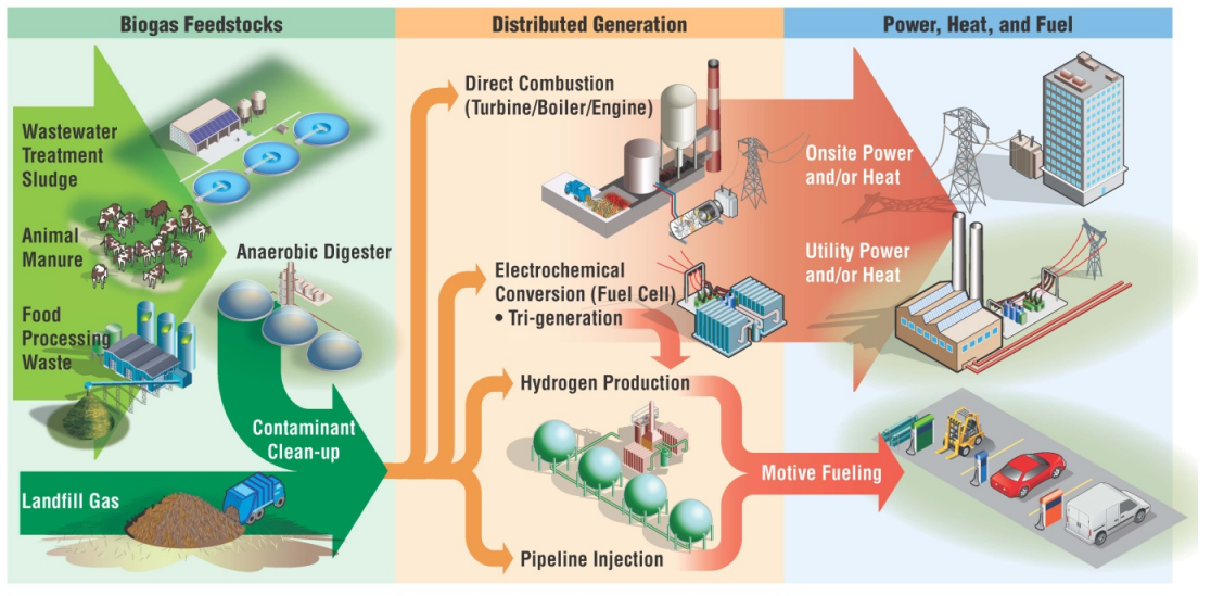 다양한 유기성 폐기물로부터 생산되는 바이오가스와 수소의 생산과정 (사진=NREL)