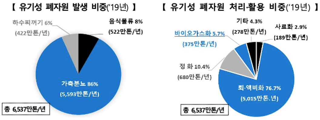 유기성 폐자원 발생 비중 및 폐자원 처리 및 활용비중 (사진=환경부)