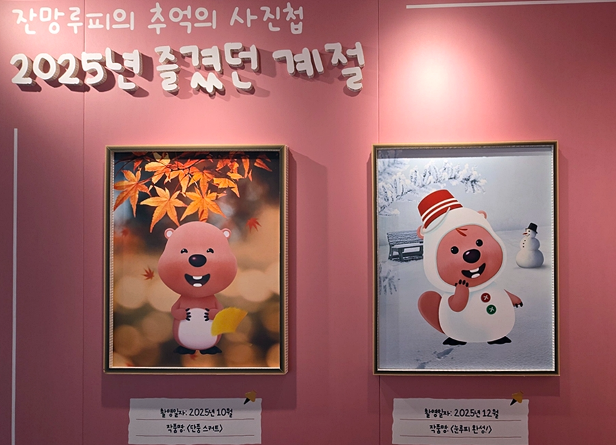 ‘기후변화 전시존’은 탄소 배출로 인해 사라진 계절과 제철 식품 등을 관람할 수 있는 가상의 갤러리인데요. 2025년 잔망루피의 추억 사진첩이라는 이름으로 전망루피가 사계절을 즐겼던 모습들이 담겨 있습니다. 우리가 즐기고 있는 벚꽃놀이, 여름 캠핑, 단풍, 스키와 같은 것들인데요. 탄소중립을 실천하지 않는다면 2050년에는 이런 풍경이 사라진다는 경고를 담고 있습니다. 사실 지금도 우리 어릴 때 누렸던 여러 모습이 사라져 아이들에게 보여줄 수 없어 아쉽잖아요. 그런데 2050년에는 지금 당연히 생각하는 벚꽃 놀이나 여름 캠핑까지 사라진다고 생각하니 아찔합니다.