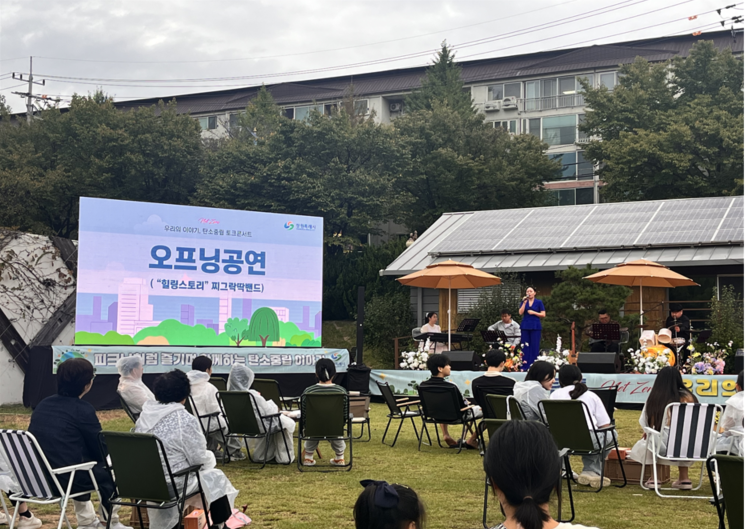 오후 4시, 본격적인 무대의 시작을 알린 것은 재활용 악기로 무대에 오른 ‘찌그락딱 밴드’였다. 물통과 쓰레기통으로 만든 드럼, 서류가방과 바둑판으로 제작한 기타, 생수통으로 만든 베이스까지 일상 속 폐자재를 악기로 재탄생시켜 공연을 선보였다.