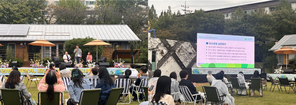 또한, 산업화 이후 급격히 상승한 이산화탄소 농도와 평균기온 변화 그래프를 제시하며 “지금의 위기는 먼 미래의 이야기 아니라, 이미 우리 일상에서 시작된 현실”이라고 강조했다. 이어 “탄소중립은 단순히 배출을 줄이는 것이 아니라, 배출과 흡수가 균형을 이루는 사회로 나아가는 과정”이라며, 시민들의 일상 속 작은 실천이 곧 가장 큰 변화의 출발점임을 강조했다.