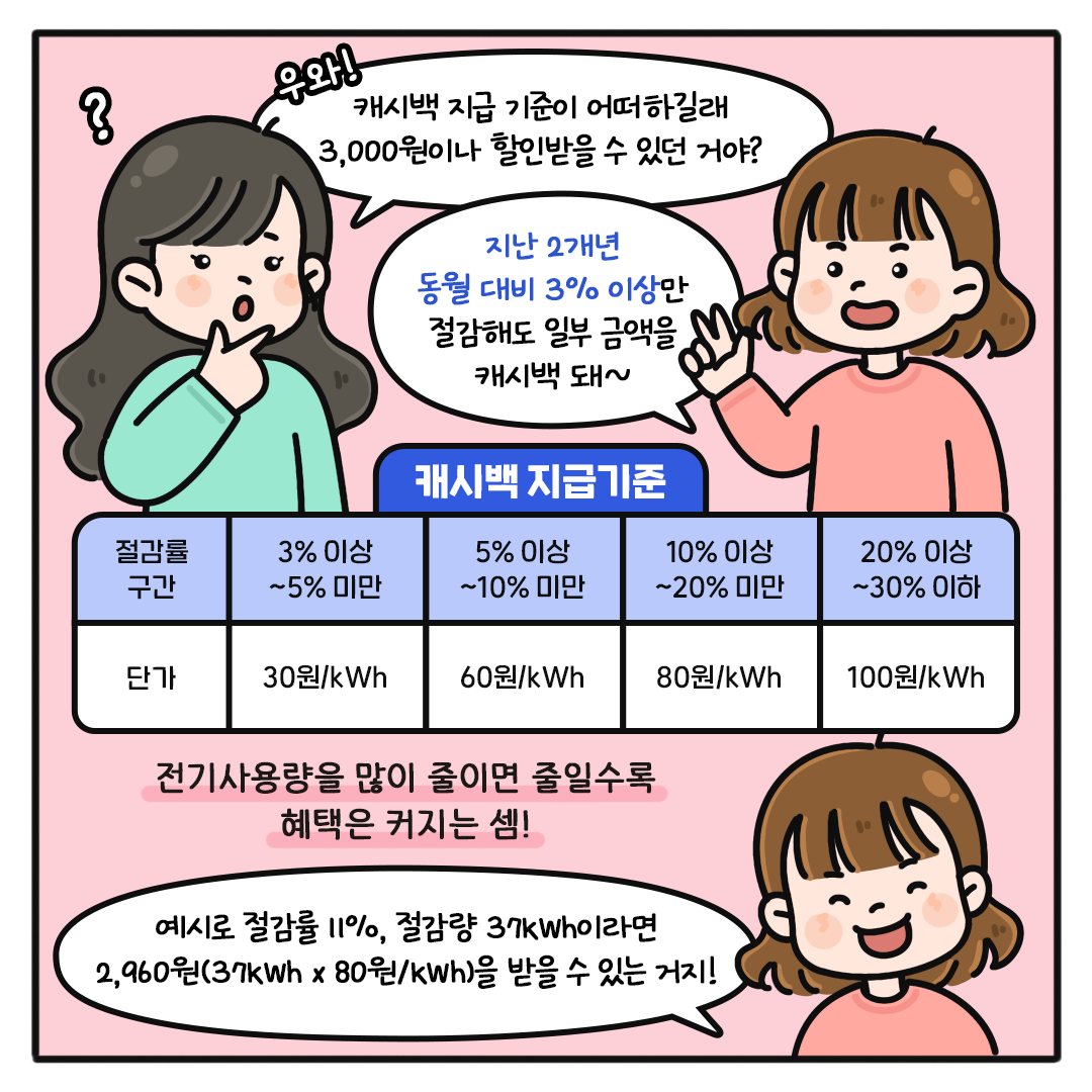 * 예시: 절감률 11%, 절감량 37kWh이라면 2,960원(37kWh x 80원/kWh)을 받을 수 있음